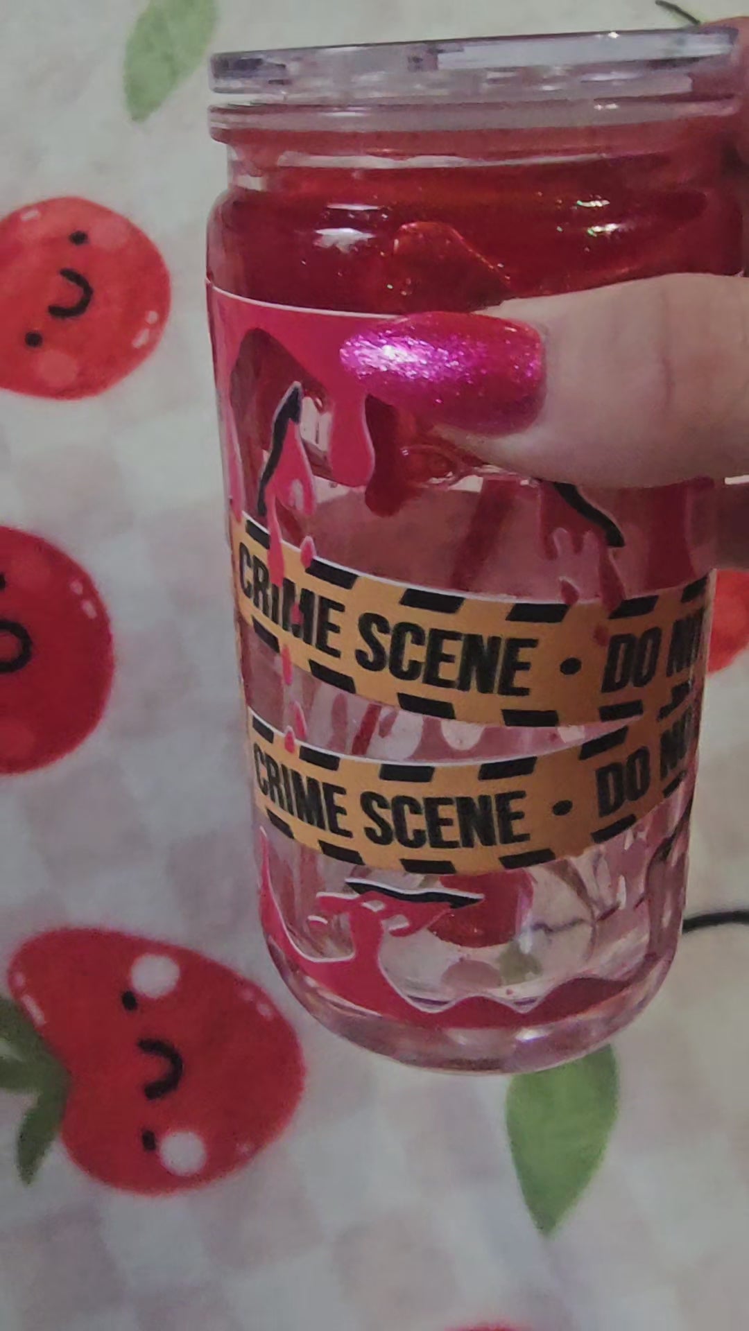 16 oz acrylic tumbler as a drip cup. Looks like blood drip with a True Crime wrap